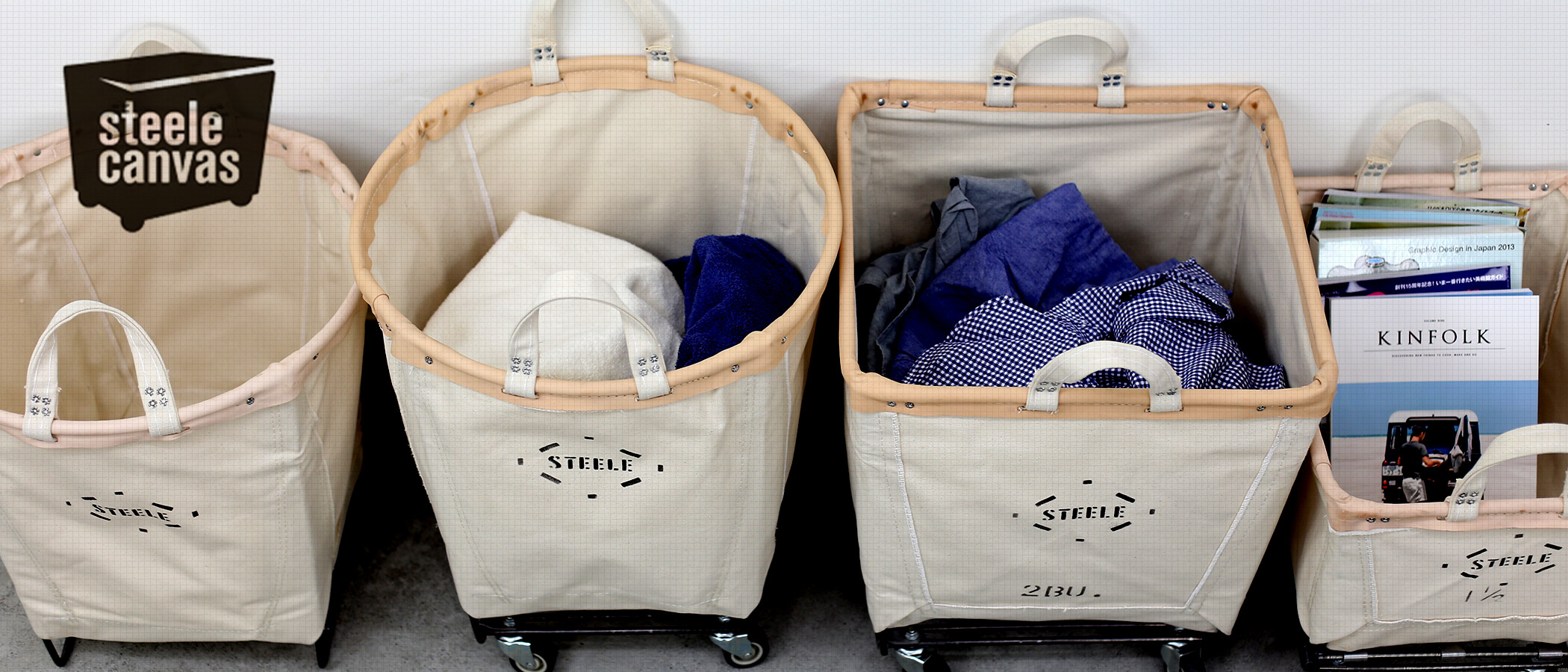アメリカ・マサチューセッツ州で1921年に創業した、業務用バスケットメーカーSTEELE Canvas Basket Corp. が製造するバスケット。ランドリー工場、ホテル、郵便局などで使われる、頑丈さと実用性が持ち味です。