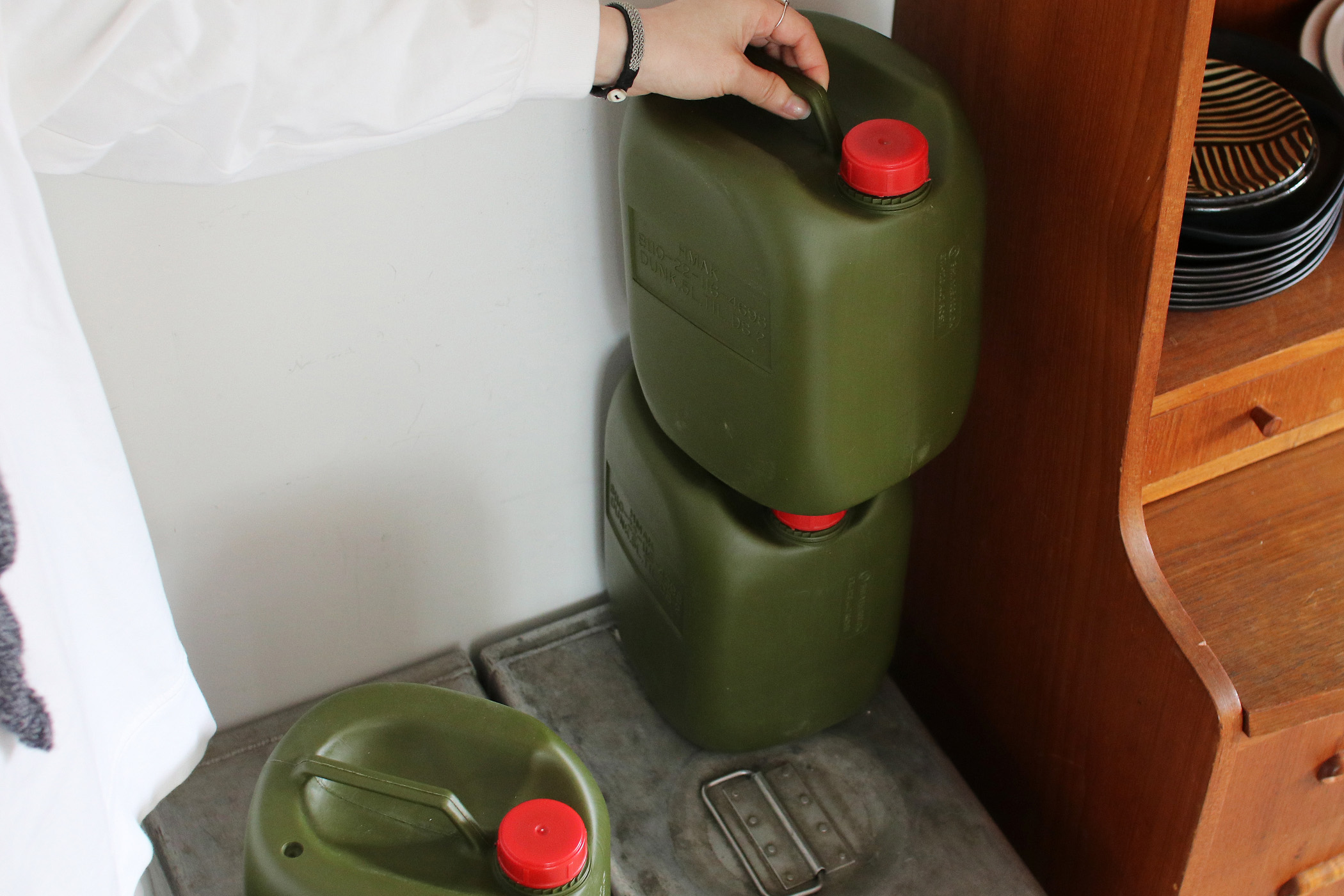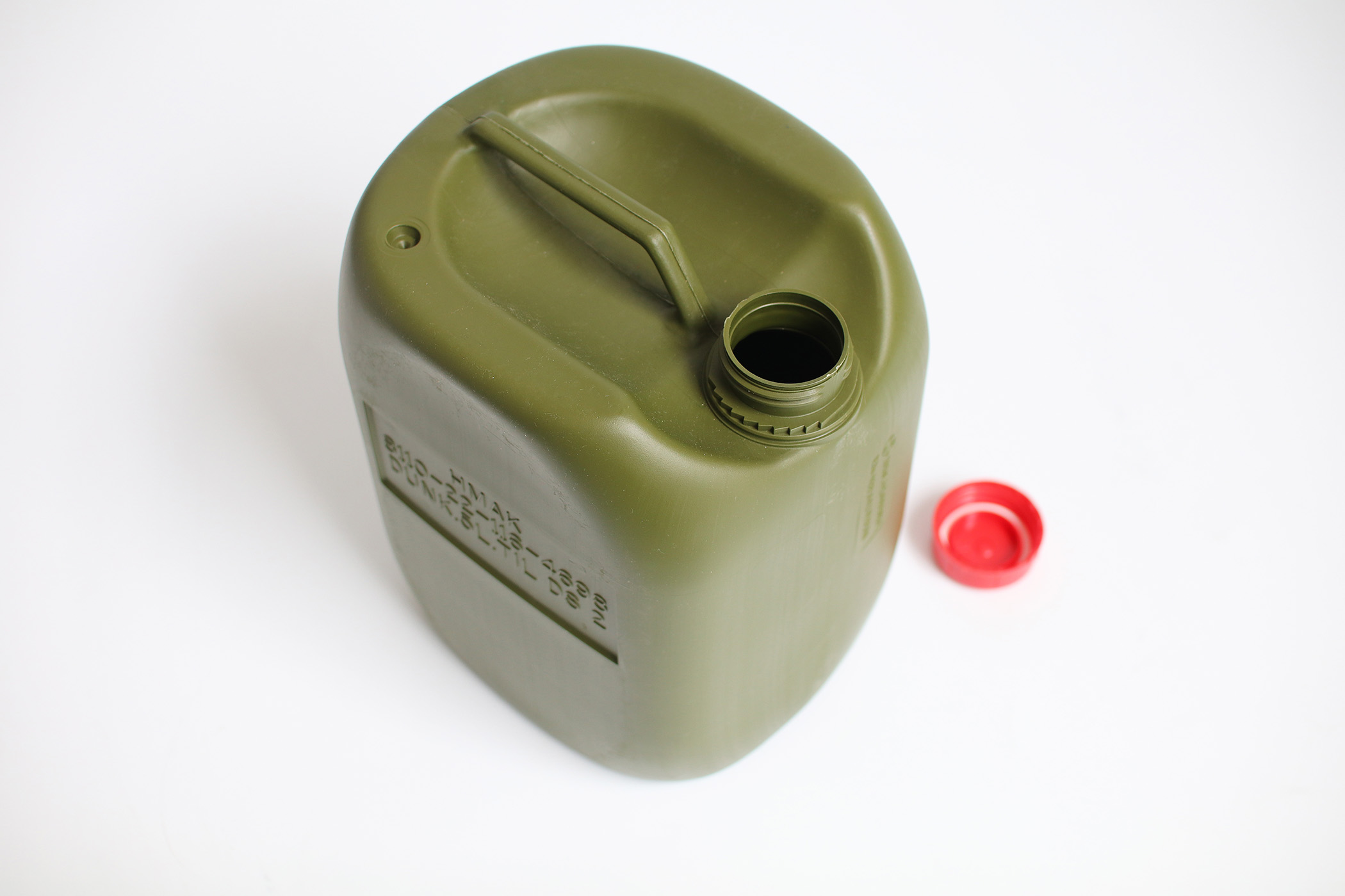 5Lという扱いやすい容量、オリーブドラブのボディに赤いスクリューキャップ。