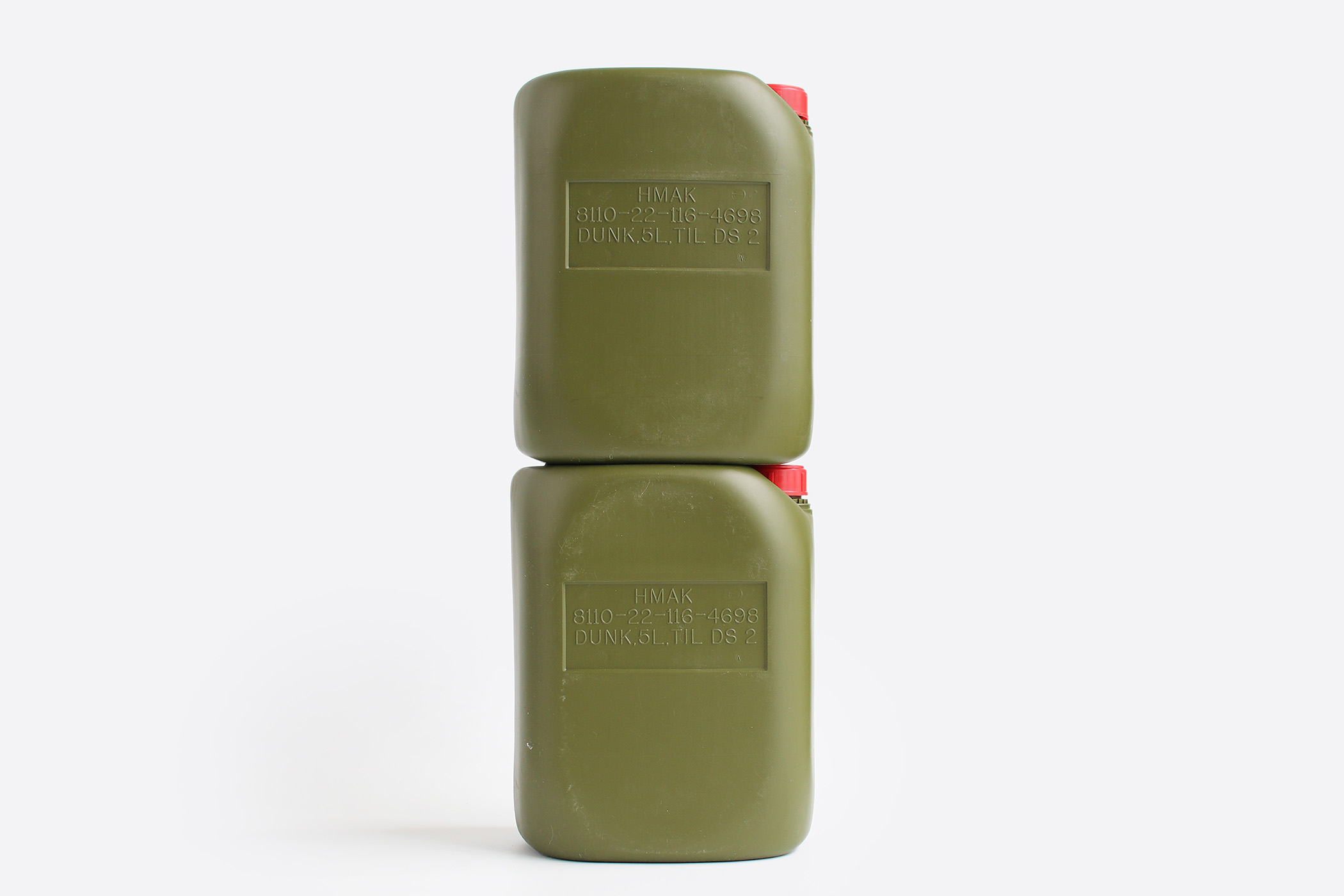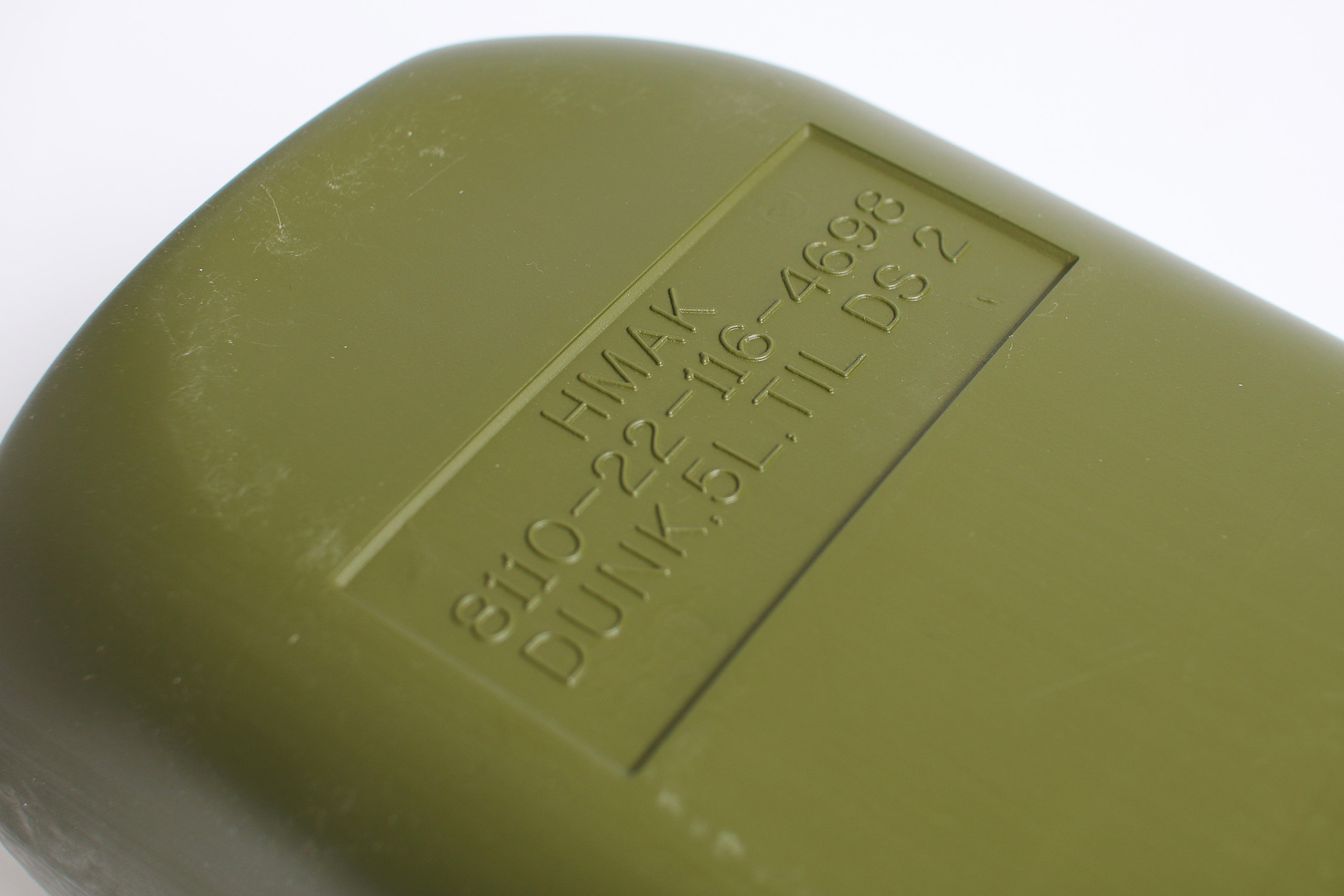 必要な機能だけを残した、無駄のない四角い容器のデンマーク軍で使用されたウォータボトル。