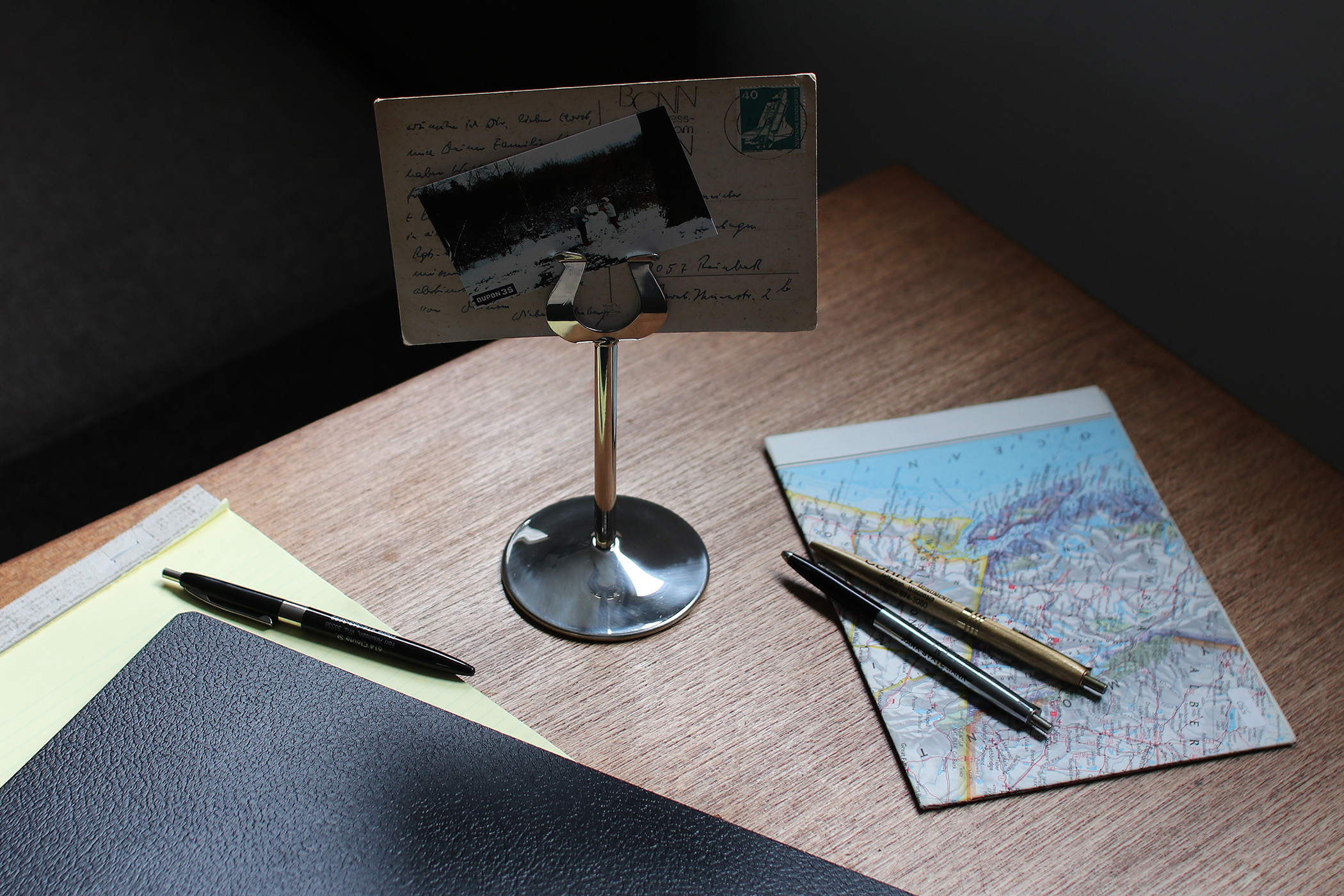 ポストカードやショップカードを挟むと位置がぴたりと決まる