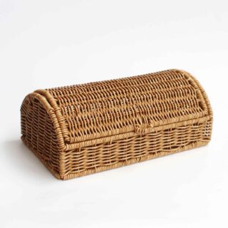 このローバスケットは、フタを“かぶせるだけ”で視界を整える道具です。形は昔のパン箱のようなドーム。出し入れがワンアクションで、食後の片づけが続きます。