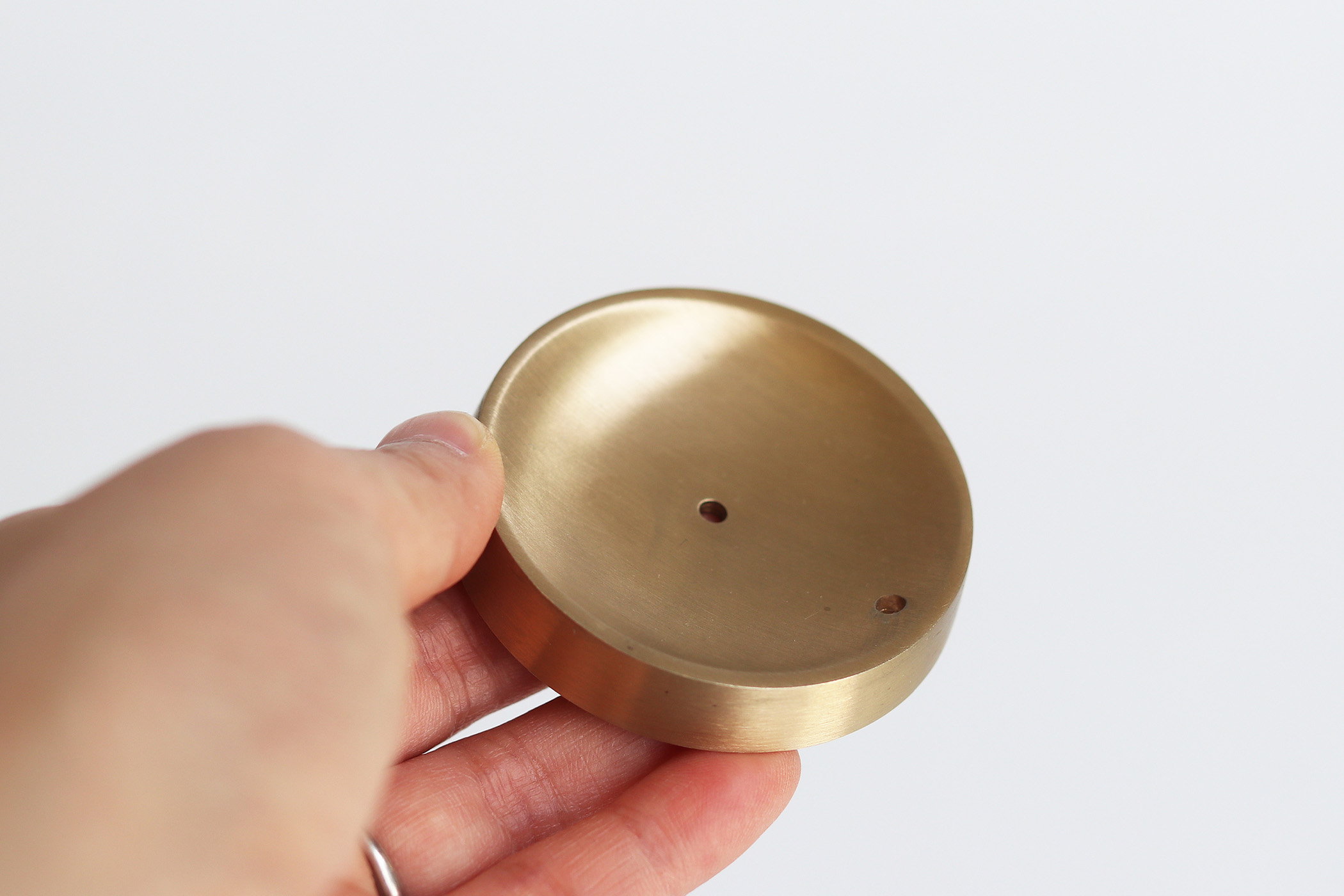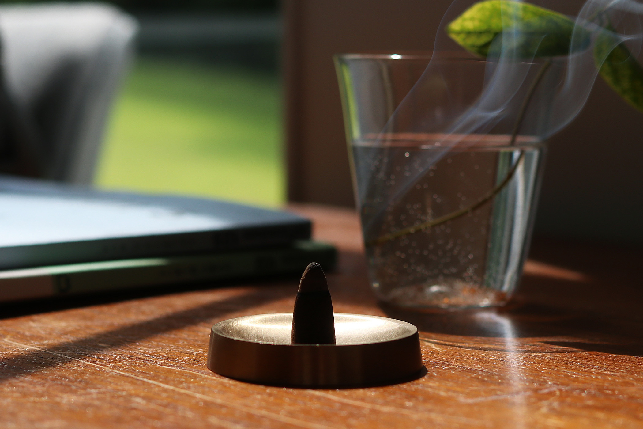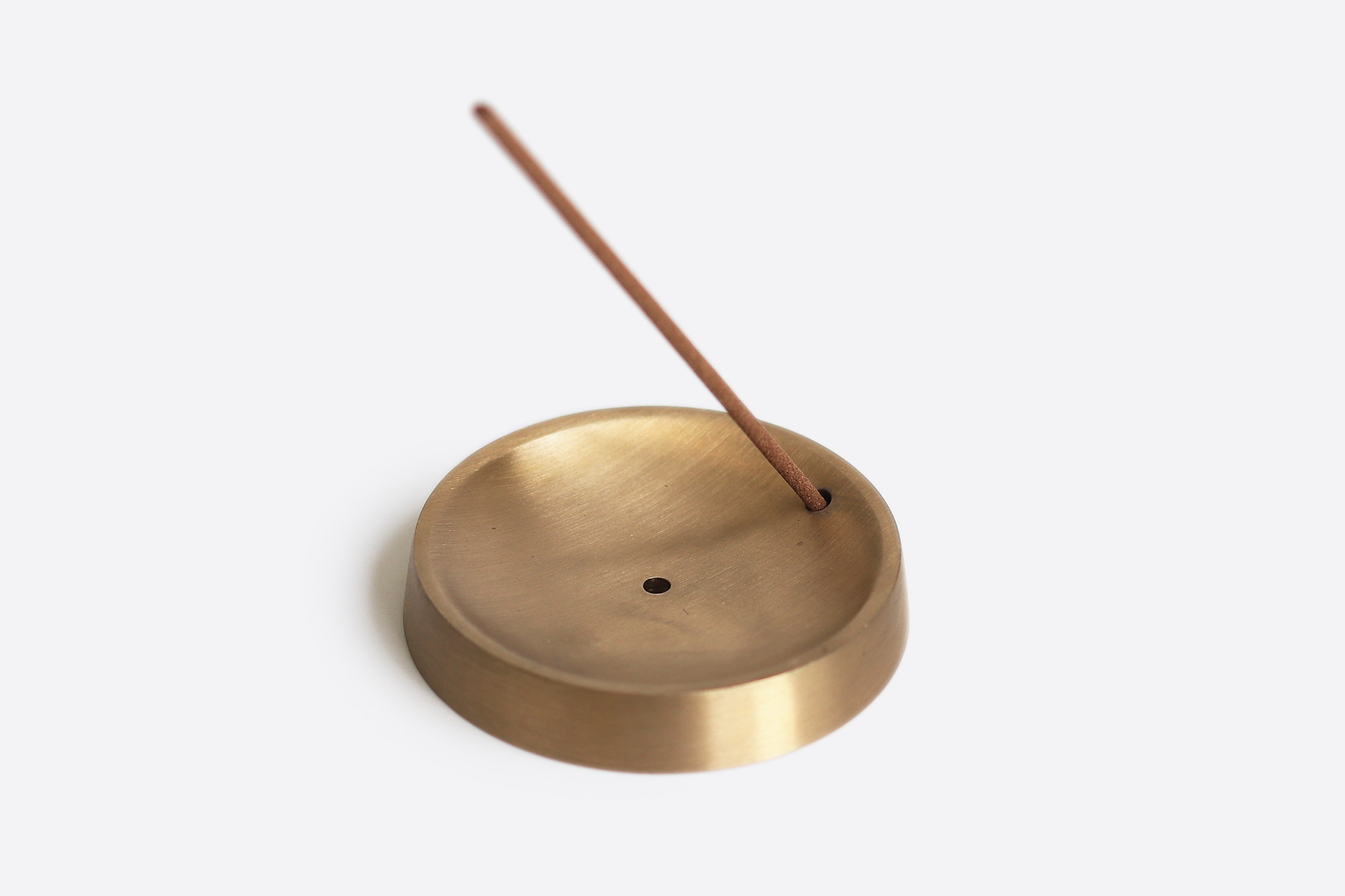 真鍮の塊を削り出した、シンプルなお香立て。