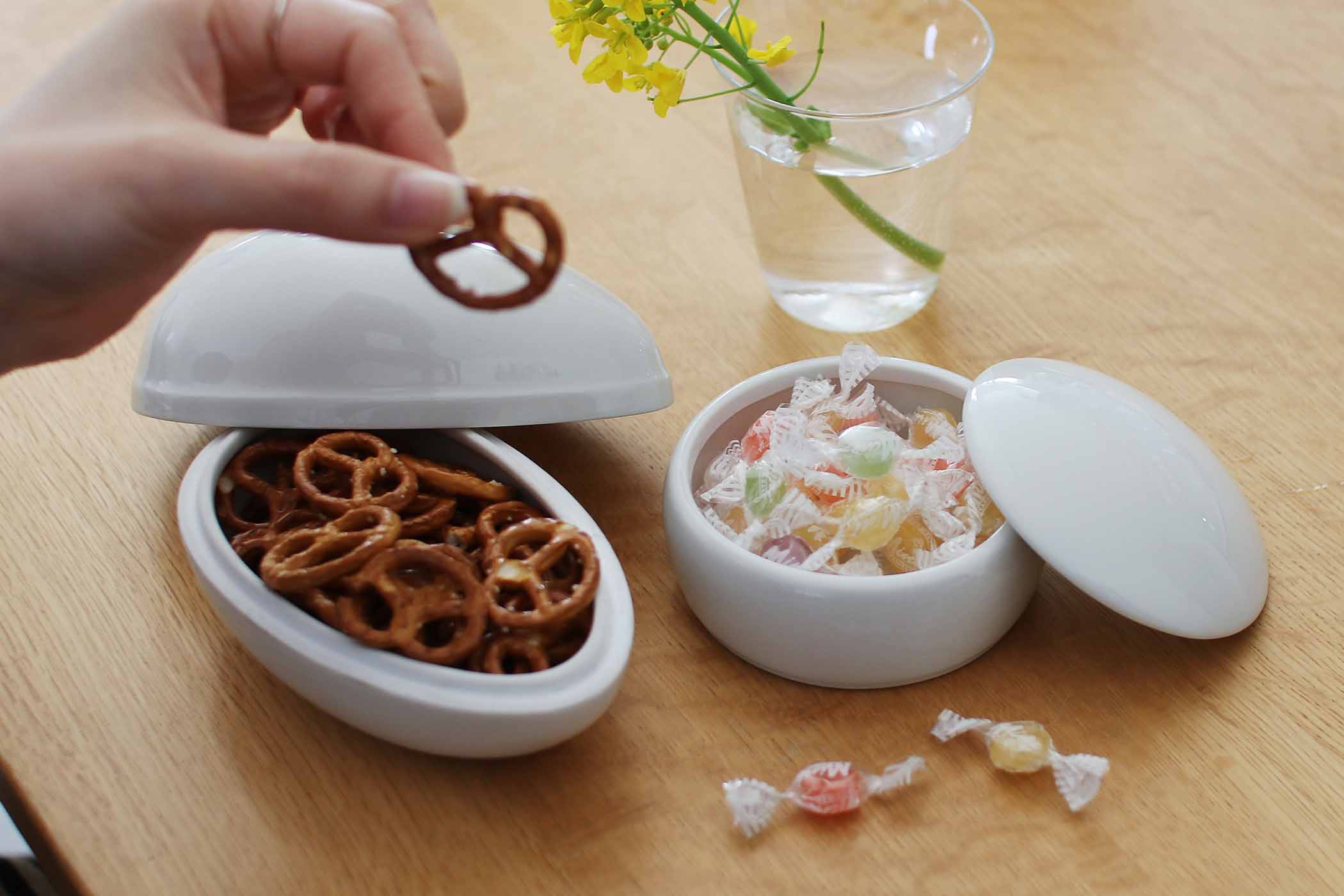 楕円は、お菓子やちょっとしたおつまみを入れてもいい。