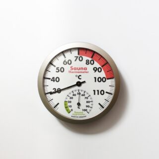 ドイツ TFA社のアナログ式サウナ温湿度計。