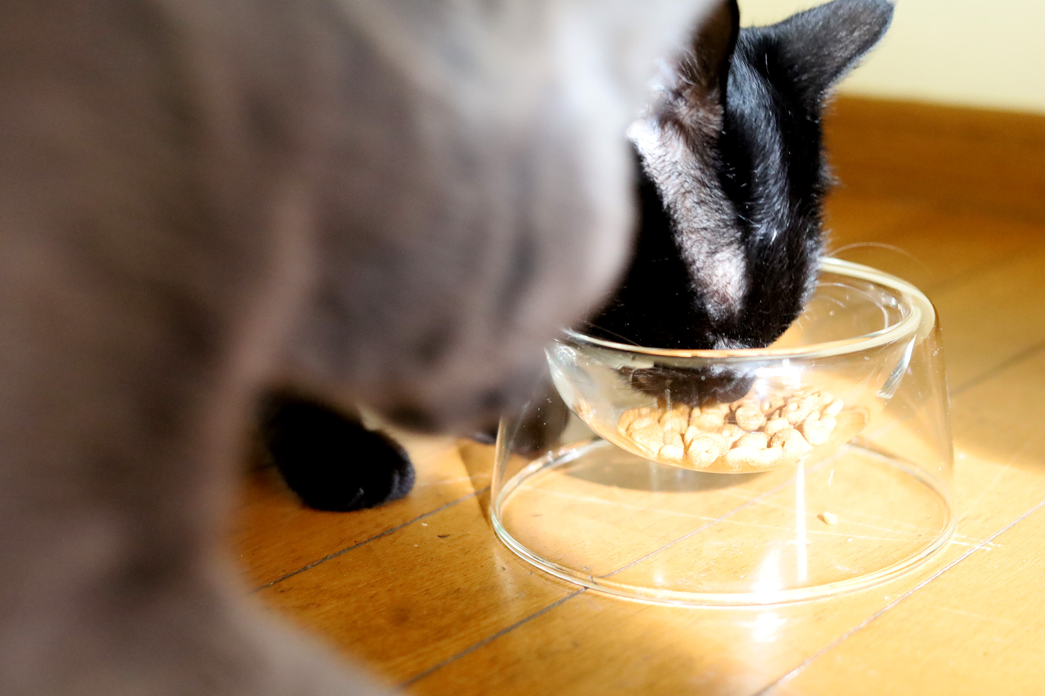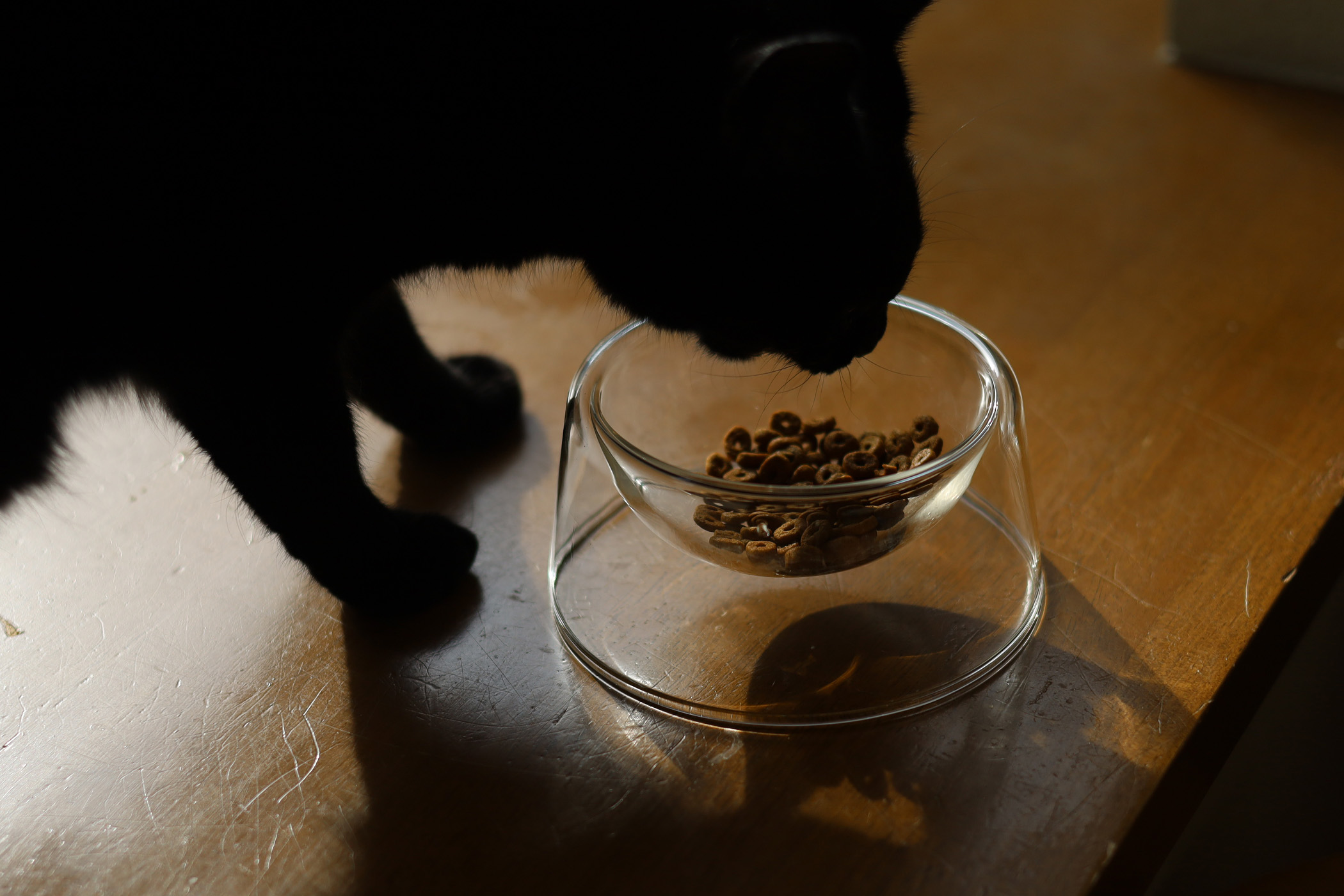 光が当たれば、きれいな影を落とす。 愛猫の食事風景を、単なる「エサの時間」から、眺めていたくなるような静かなシーンに変えてくれる。